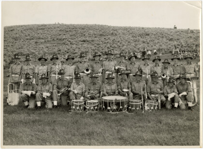 The 1st Canterbury Regimental Band at Tekapo. In the front ...