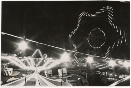 View of the amusement rides at the Industries Fair at night at ...