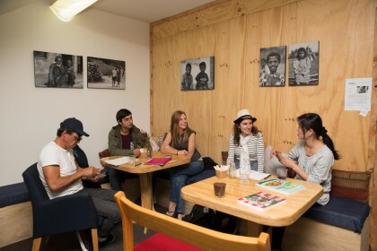 A group of people gathered for the Christchurch Language Café, ...