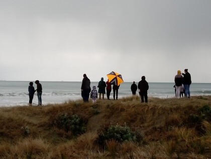 A crowd of people gathered on Waimairi Beach watching a dead ...