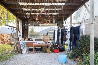 Hanging out washing in a garden in Halswell