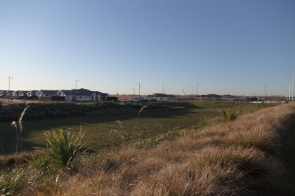 View across to houses at the new subdivision at Wigram Skies.