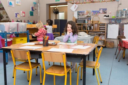 Preschool student smiles and plays at lunch time at Bishopdale ...