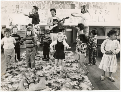 Children and teachers outside at Phillipstown Kindergarten on St ...