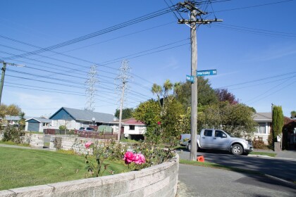 Corner of Hornsby and Maple Street, Bishopdale with power pylons ...