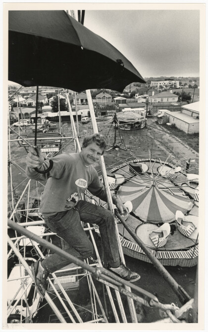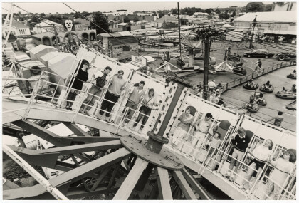 View of a fairground ride in use at the Canterbury Agricultural ...