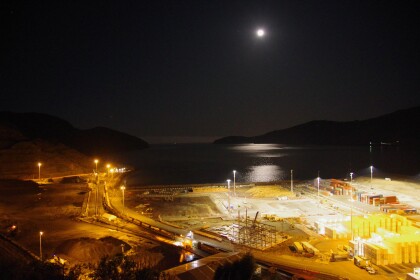 Aerial view of Lyttelton Harbour and Lyttelton with ships docked ...